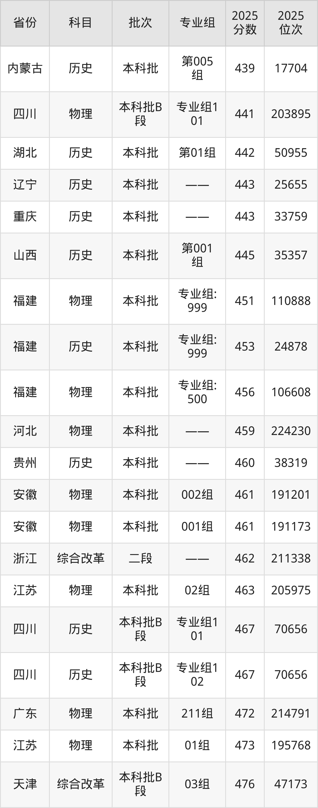 2025年桂林信息科技学院在各省普通批录取分数线一览表: