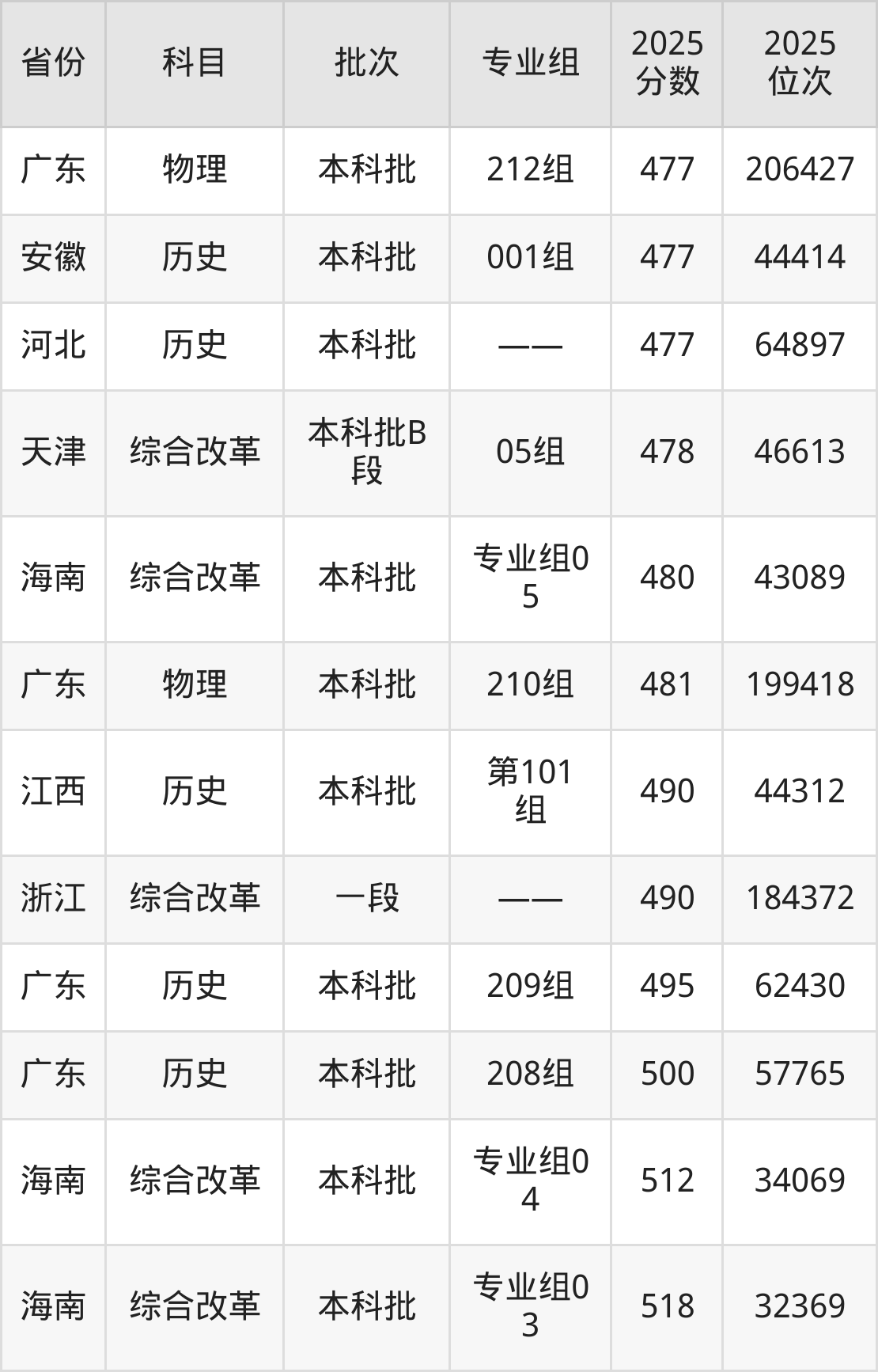 最高录取分数线是481分,对应位次是199418名,招生地区为广东。
