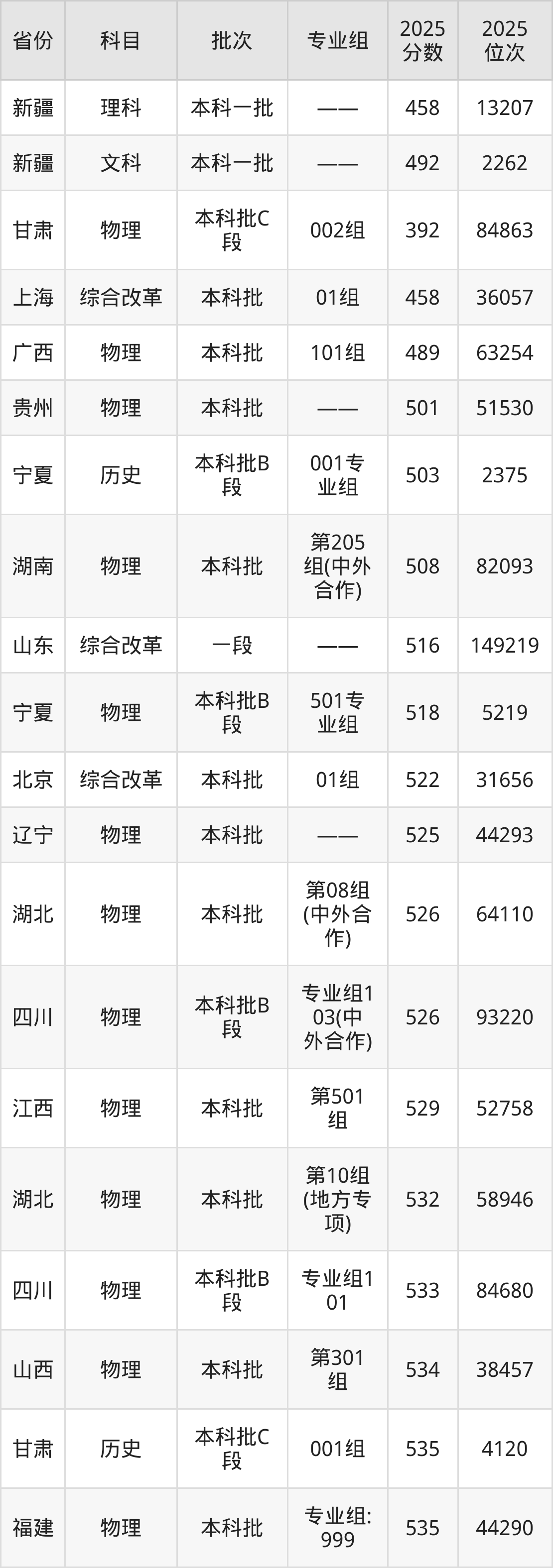 最低录取分数线是492分,对应位次是2262名,招生地区为新疆;