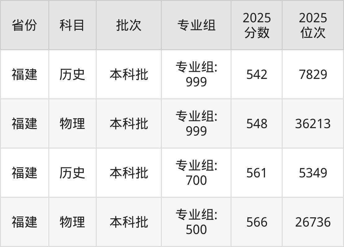 最低录取分数线是542分,对应位次是7829名,招生地区为福建;