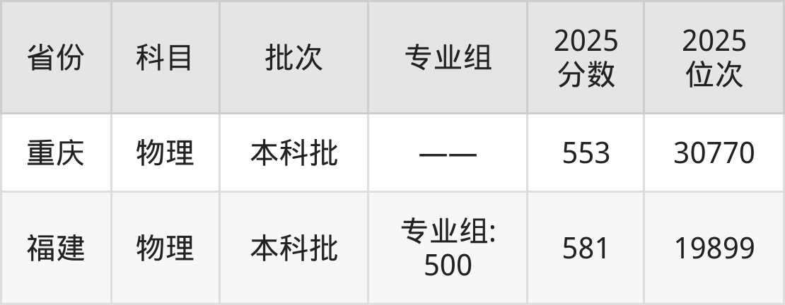 最低录取分数线是553分,对应位次是30770名,招生地区为重庆;