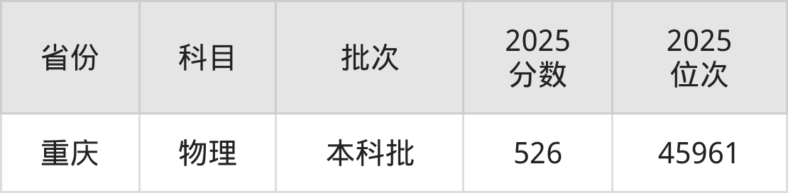 最低录取分数线是526分,对应位次是45961名,招生地区为重庆。