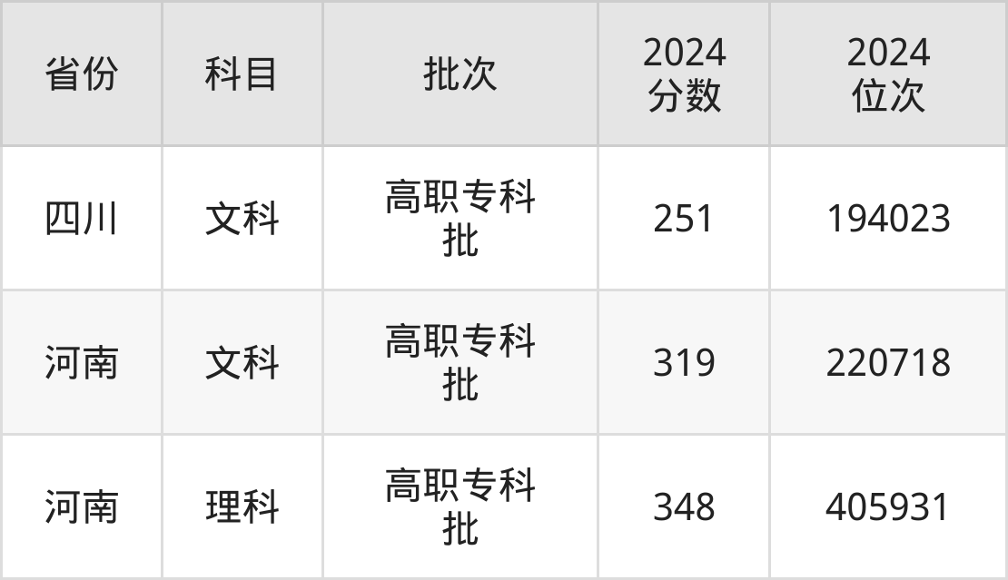最低录取分数线是251分,对应位次是194023名,招生地区为四川;
