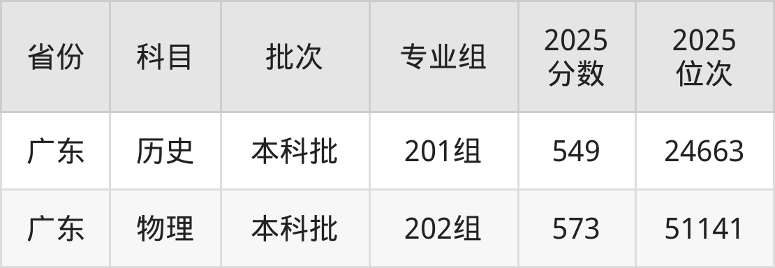 最低录取分数线是549分,对应位次是24663名,招生地区为广东。