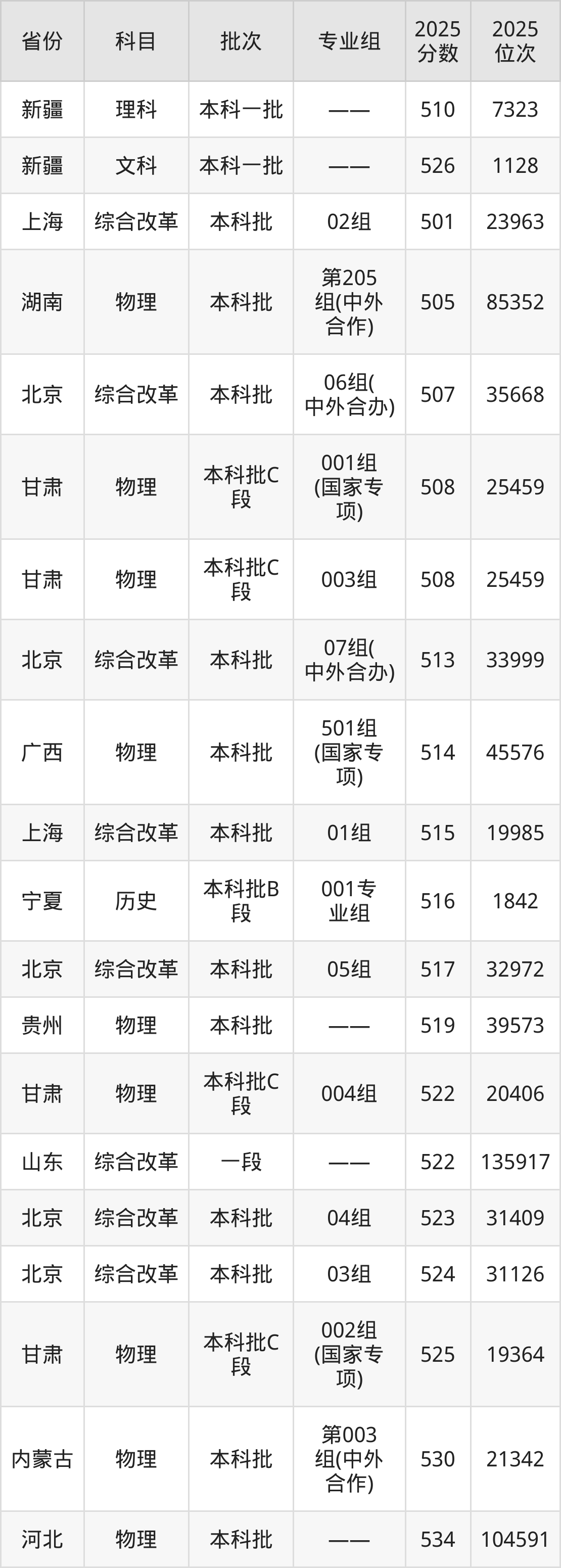 最低录取分数线是501分,对应位次是23963名,招生地区为上海;