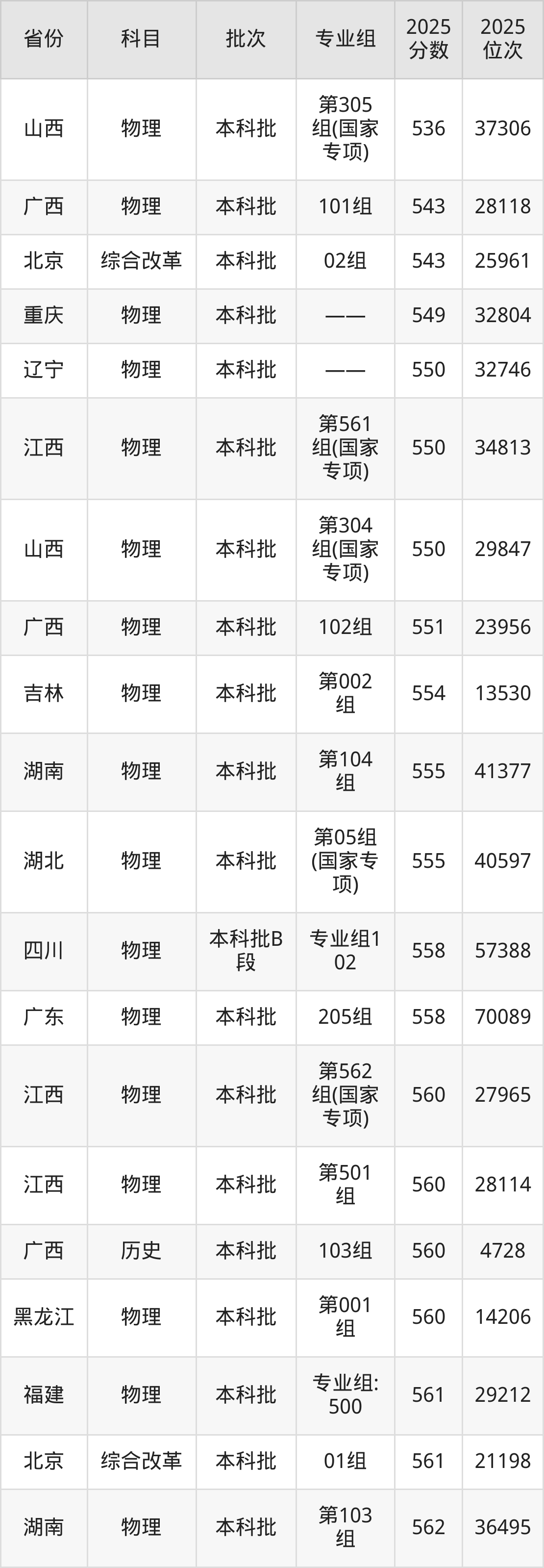 最低录取分数线是505分,对应位次是85352名,招生地区为湖南;
