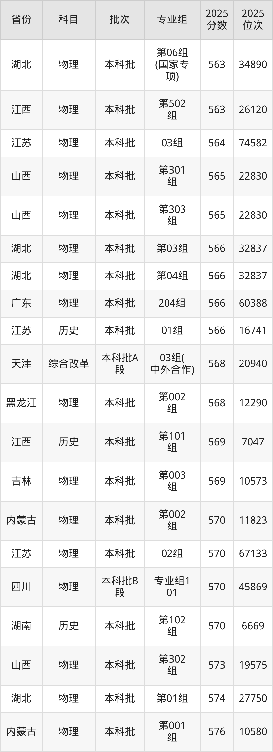 2025年北京工商大学在各省普通批录取分数线一览表: