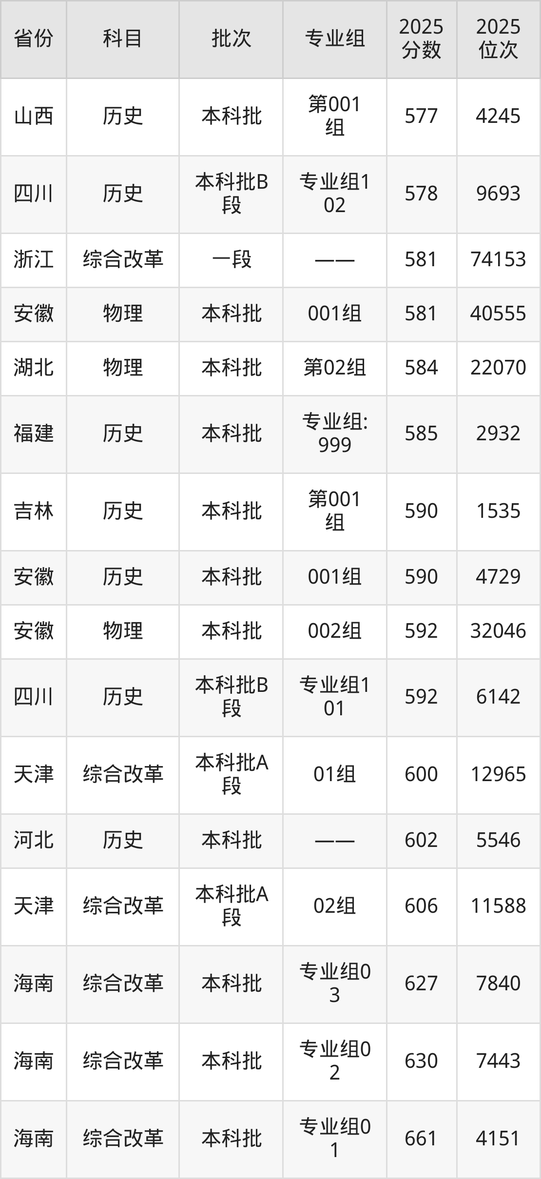 最高录取分数线是661分,对应位次是4151名,招生地区为海南。