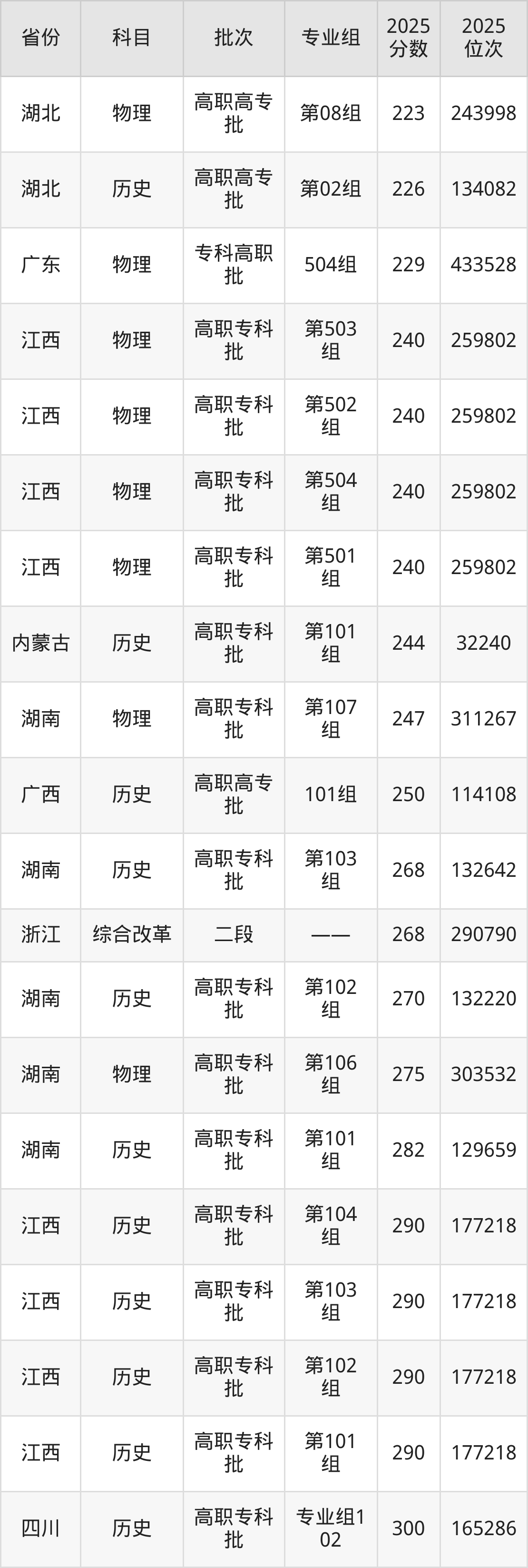 最高录取分数线是275分,对应位次是303532名,招生地区为湖南。