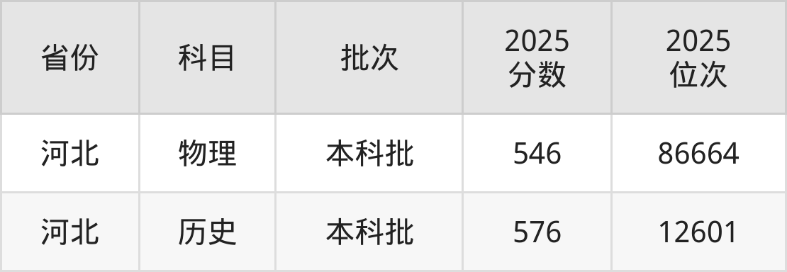 最低录取分数线是576分,对应位次是12601名,招生地区为河北。