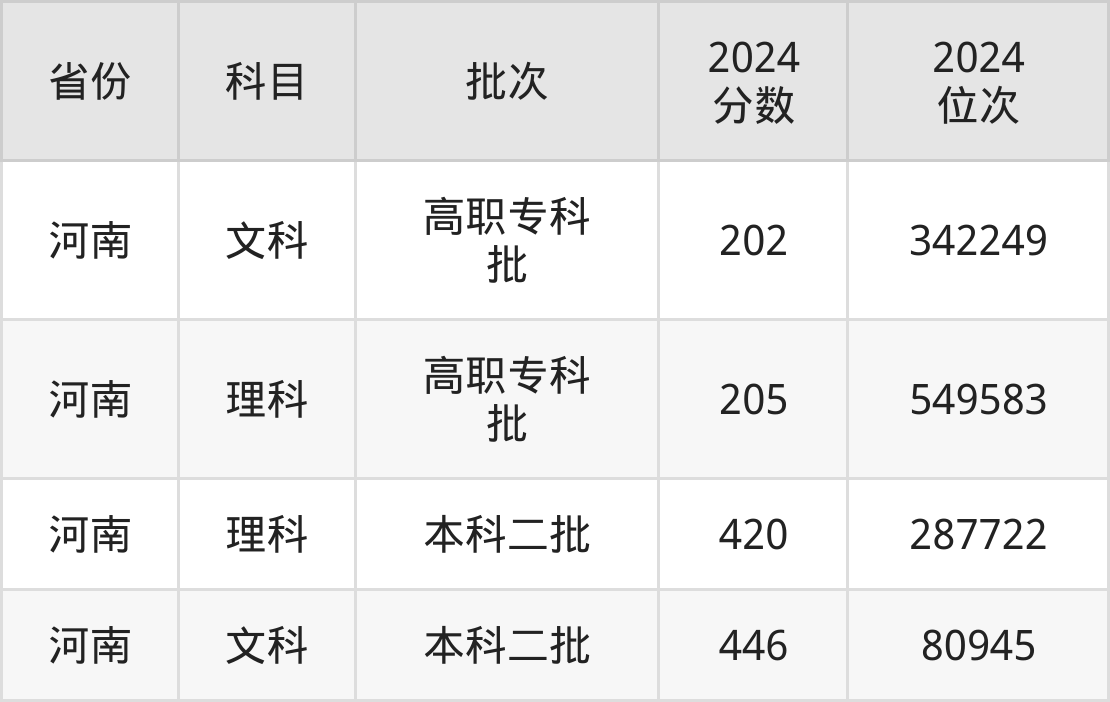 最低录取分数线是202分,对应位次是342249名,招生地区为河南;