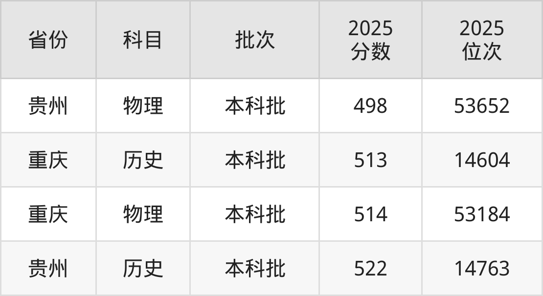 最高录取分数线是522分,对应位次是14763名,招生地区为贵州。