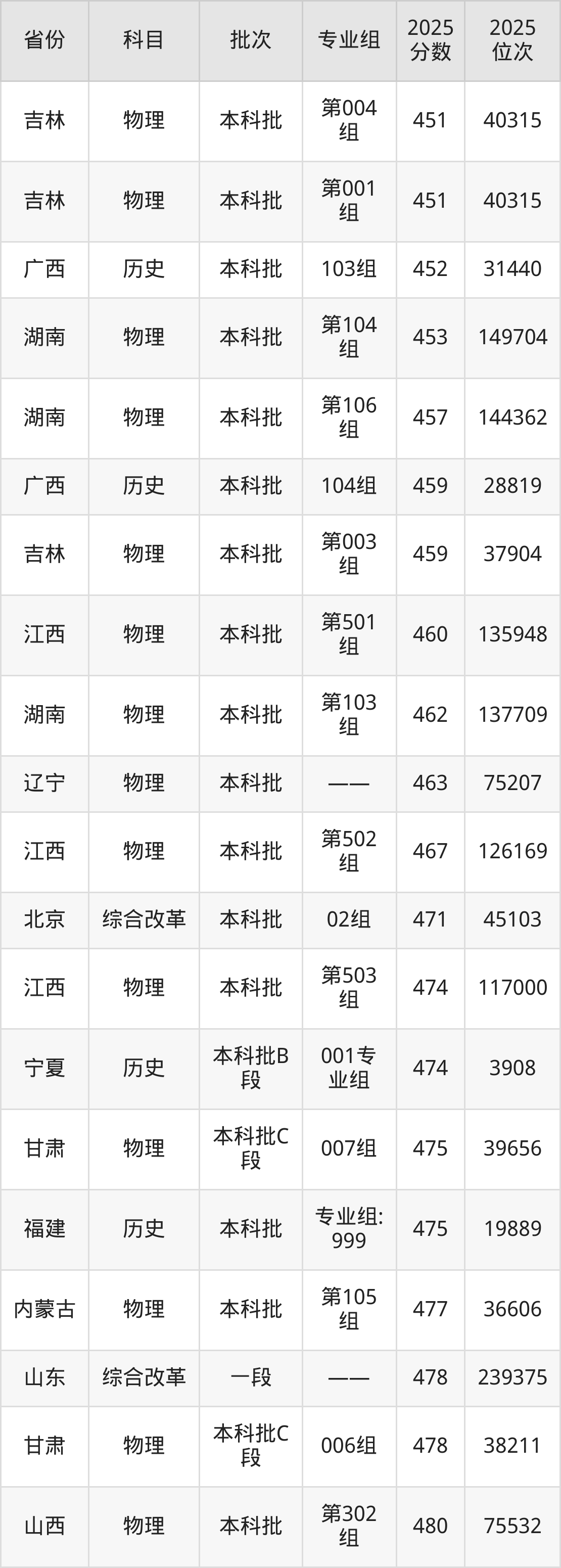 最低录取分数线是471分,对应位次是45103名,招生地区为北京;