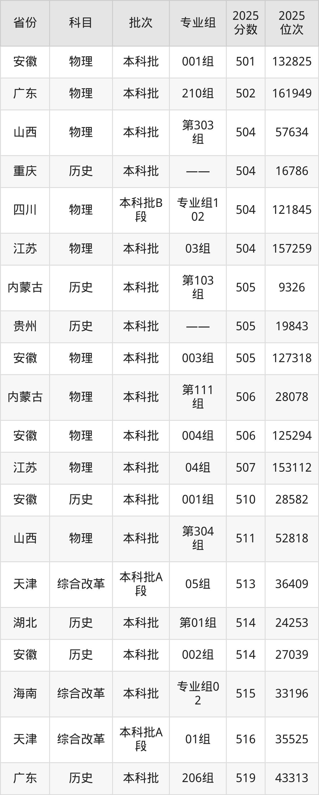最高录取分数线是551分,对应位次是8229名,招生地区为山西。