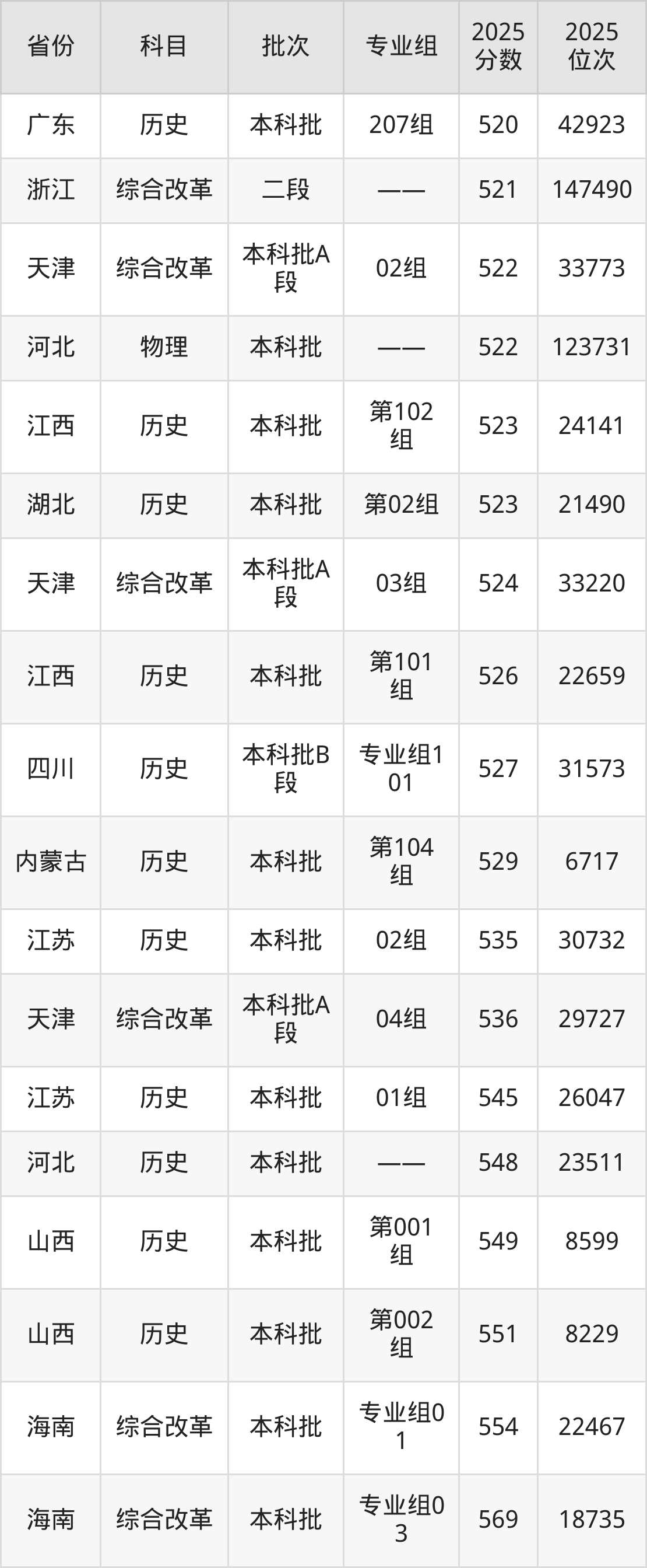 最高录取分数线是569分,对应位次是18735名,招生地区为海南。