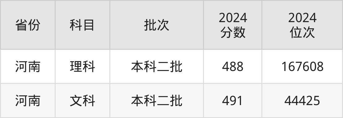 最低录取分数线是488分,对应位次是167608名,招生地区为河南。