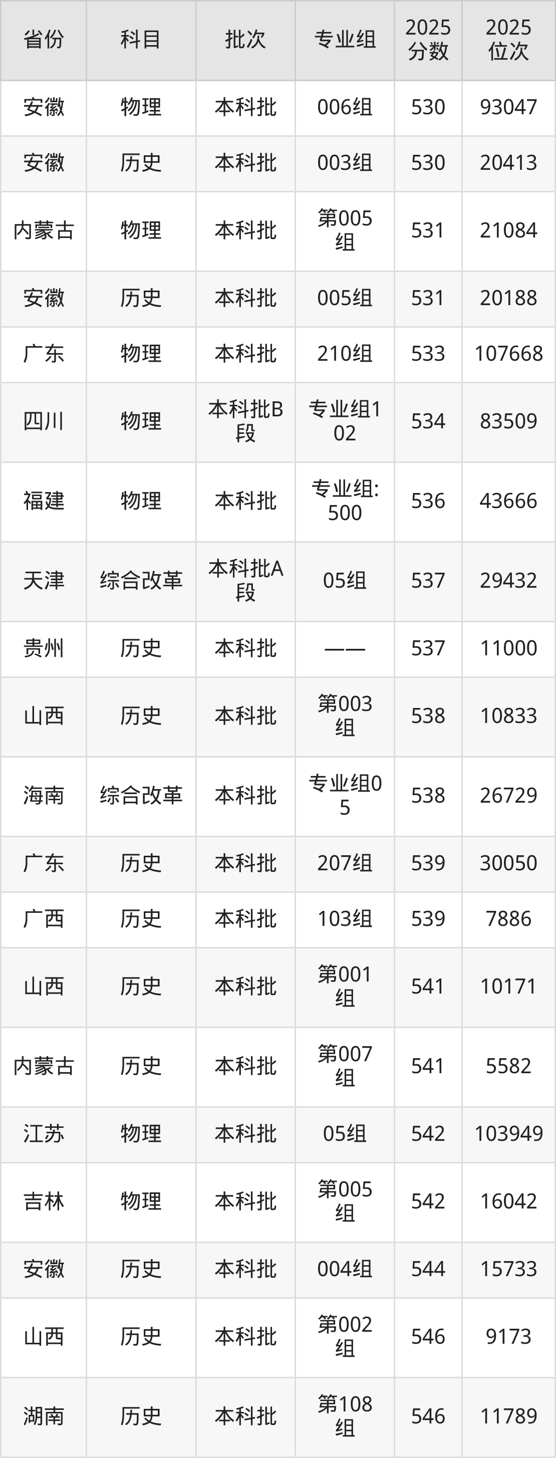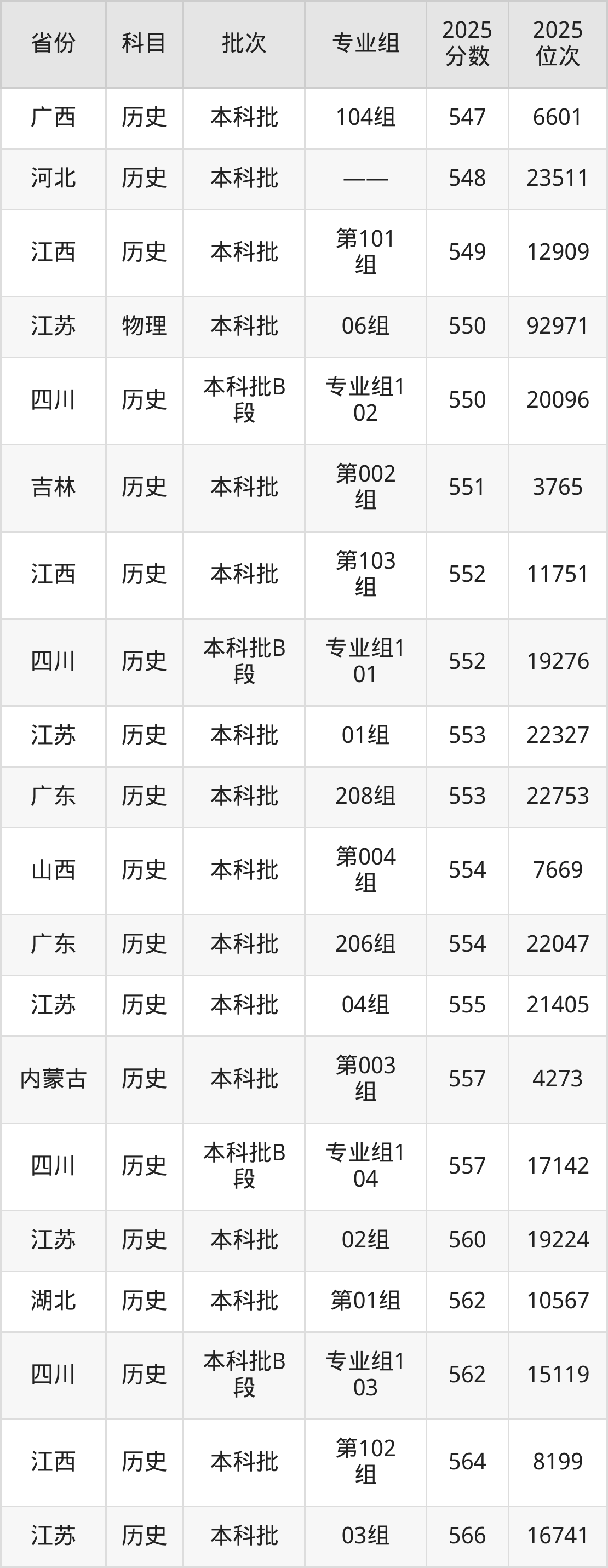 最高录取分数线是550分,对应位次是92971名,招生地区为江苏。
