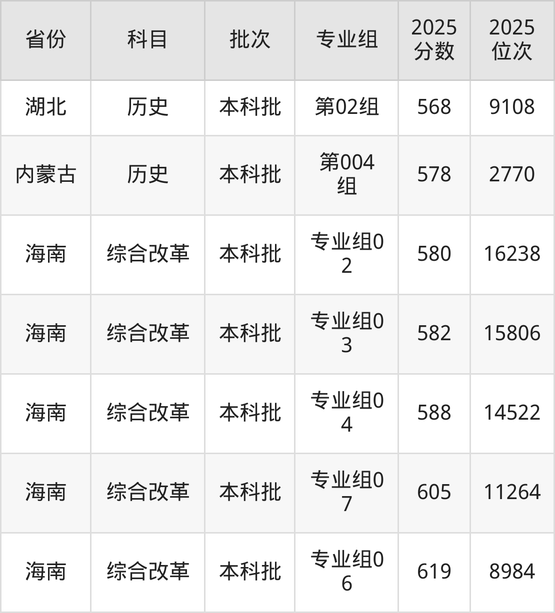 最高录取分数线是619分,对应位次是8984名,招生地区为海南。