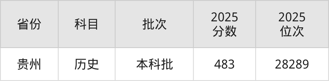 最低录取分数线是483分,对应位次是28289名,招生地区为贵州。