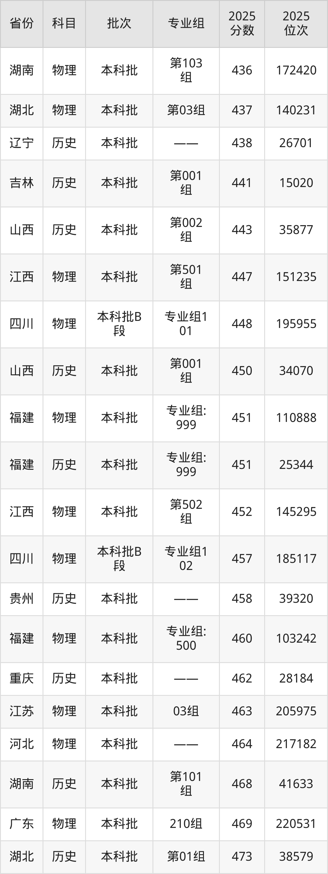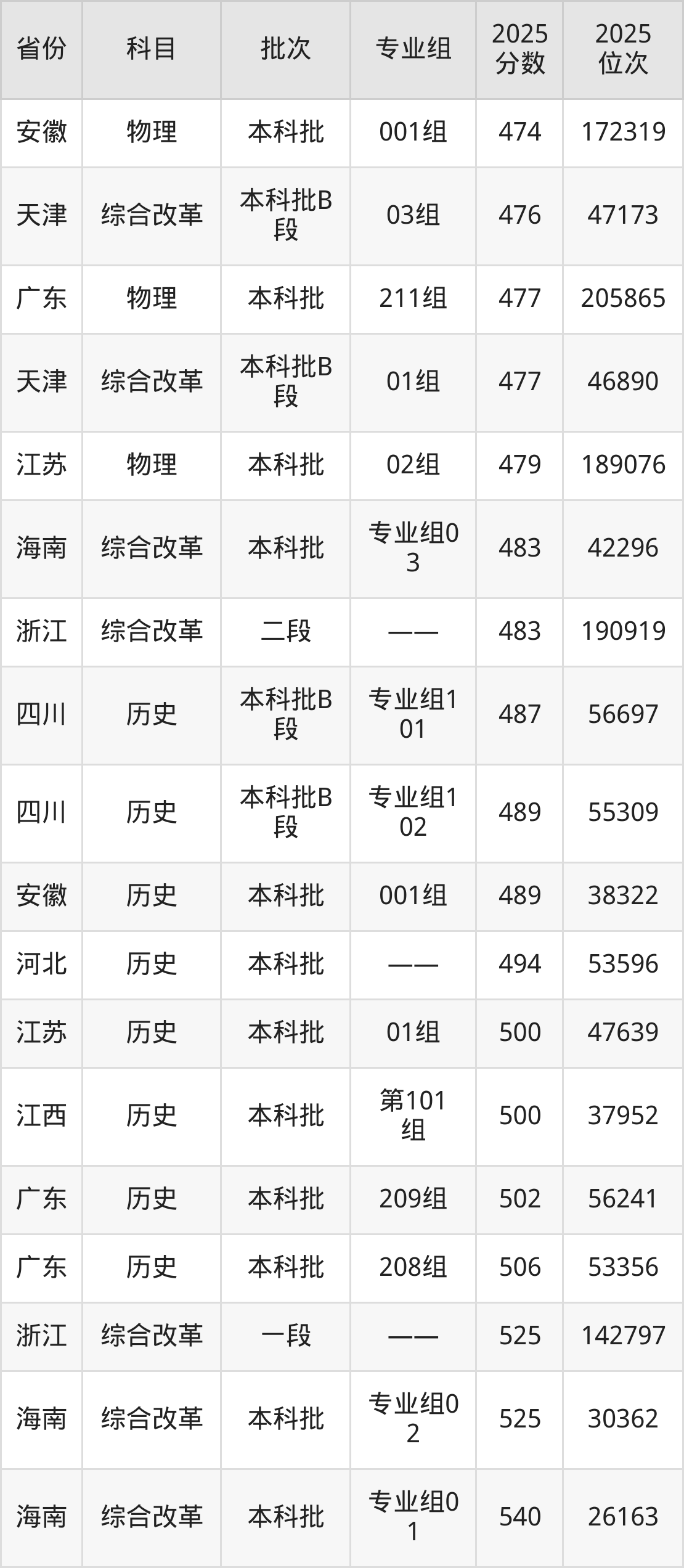 最高录取分数线是479分,对应位次是189076名,招生地区为江苏。