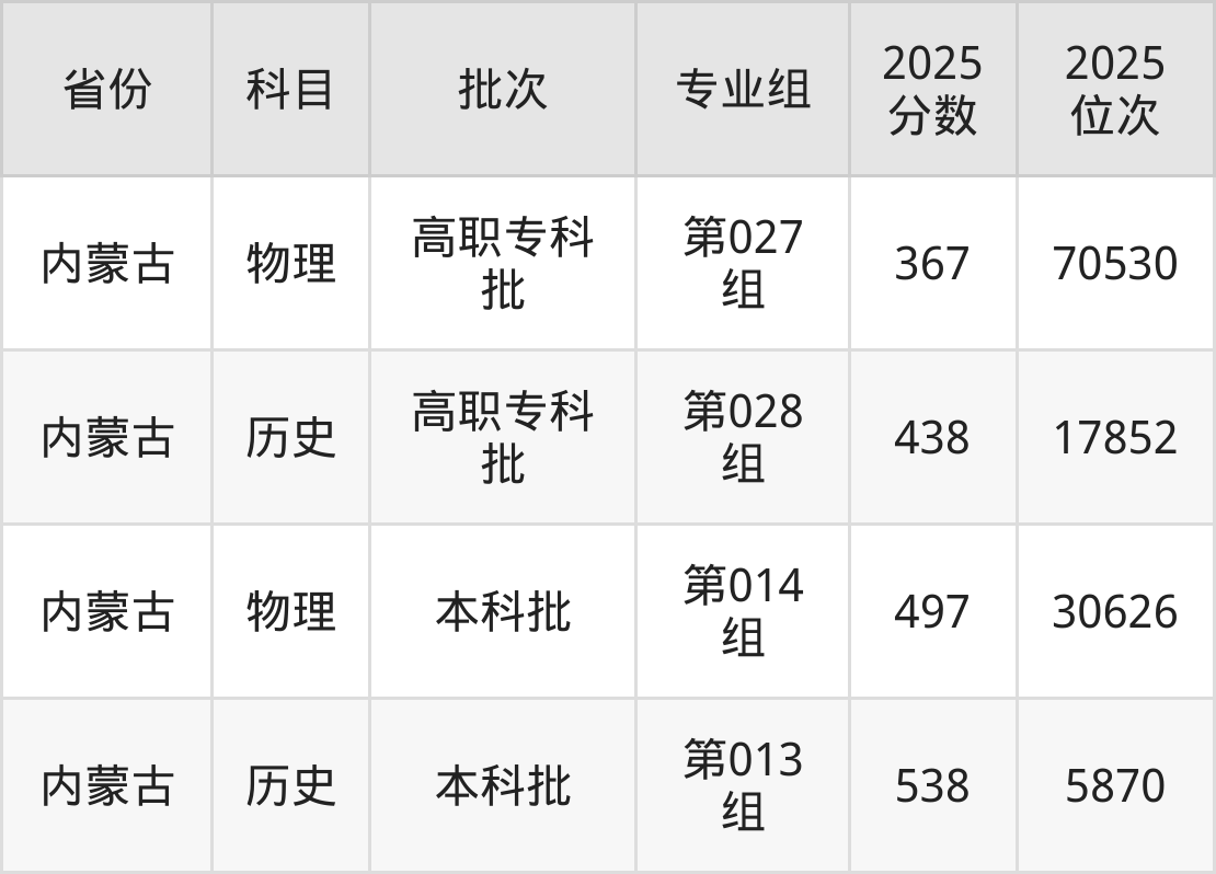 最低录取分数线是438分,对应位次是17852名,招生地区为内蒙古;