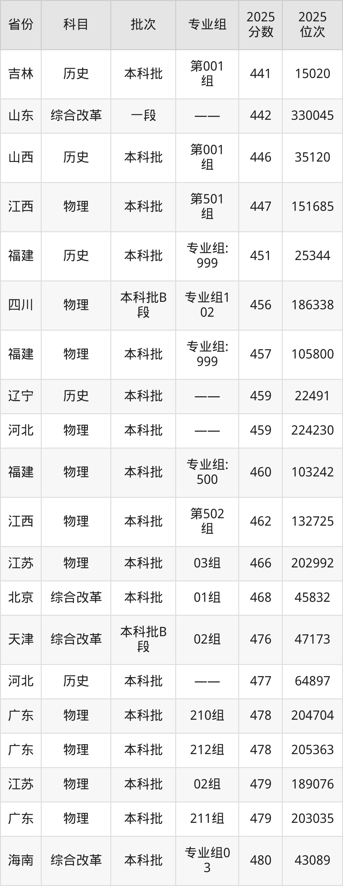 最高录取分数线是481分,对应位次是198829名,招生地区为广东。