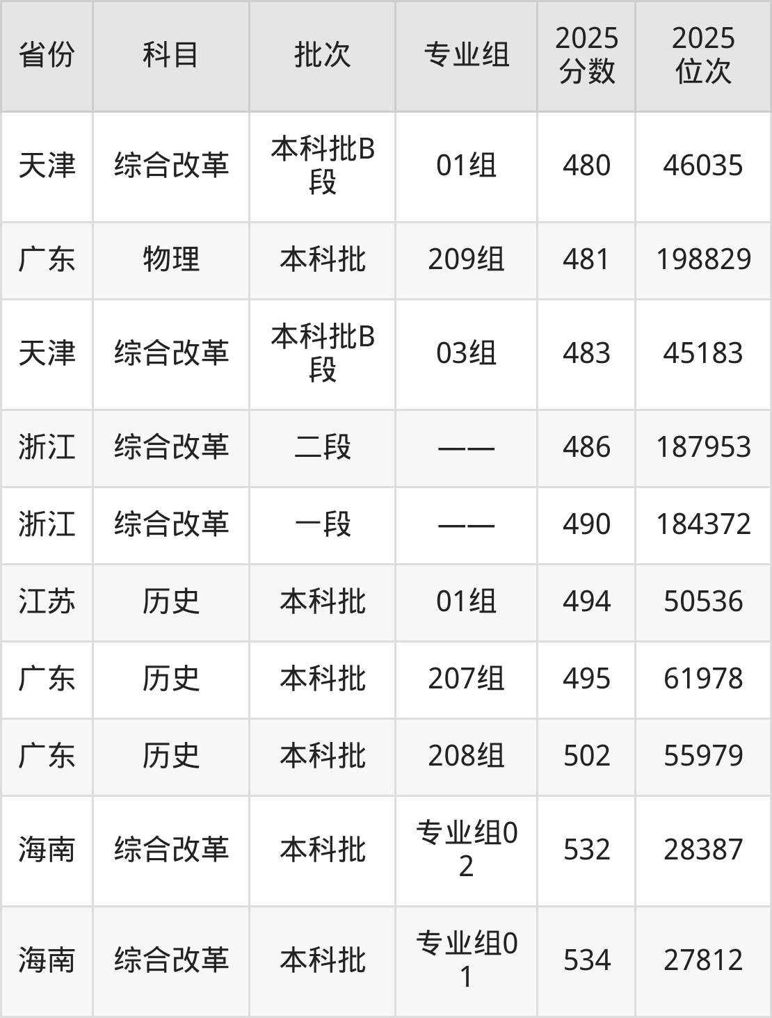 2025年沧州交通学院在各省普通批录取分数线一览表:
