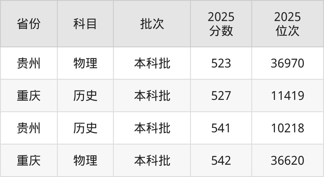 最高录取分数线是541分,对应位次是10218名,招生地区为贵州。
