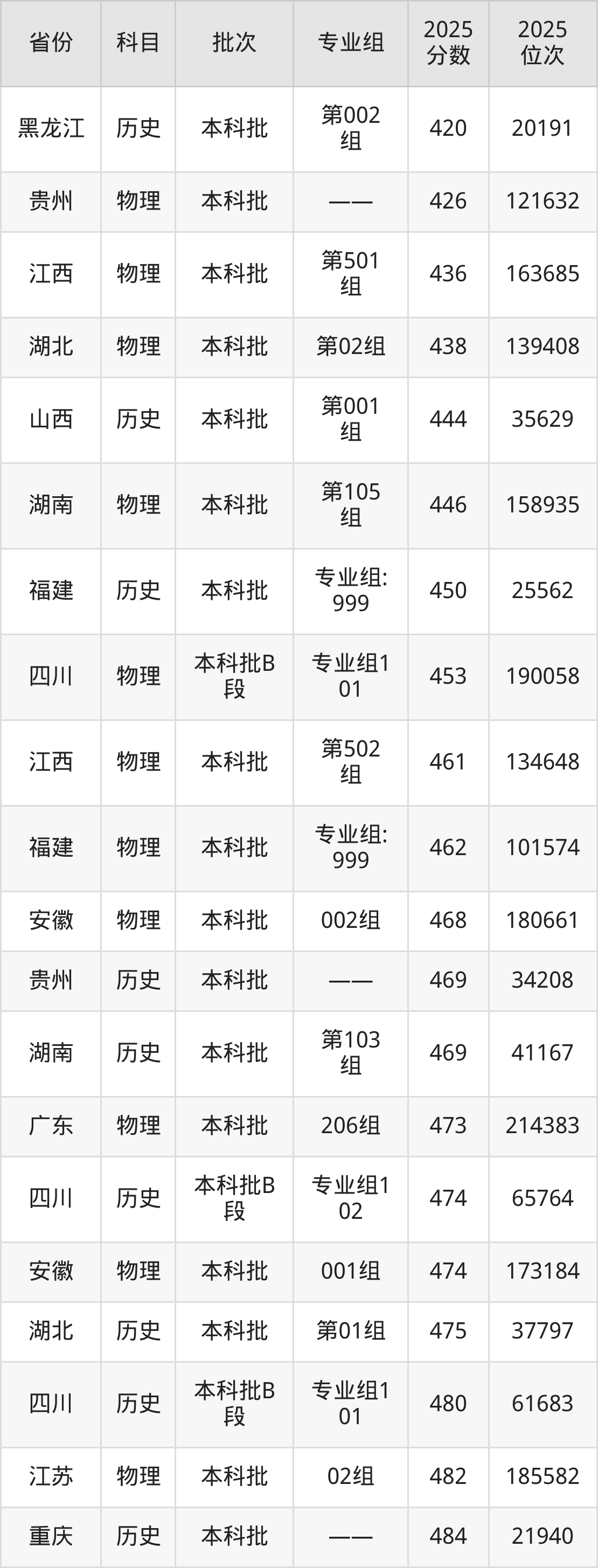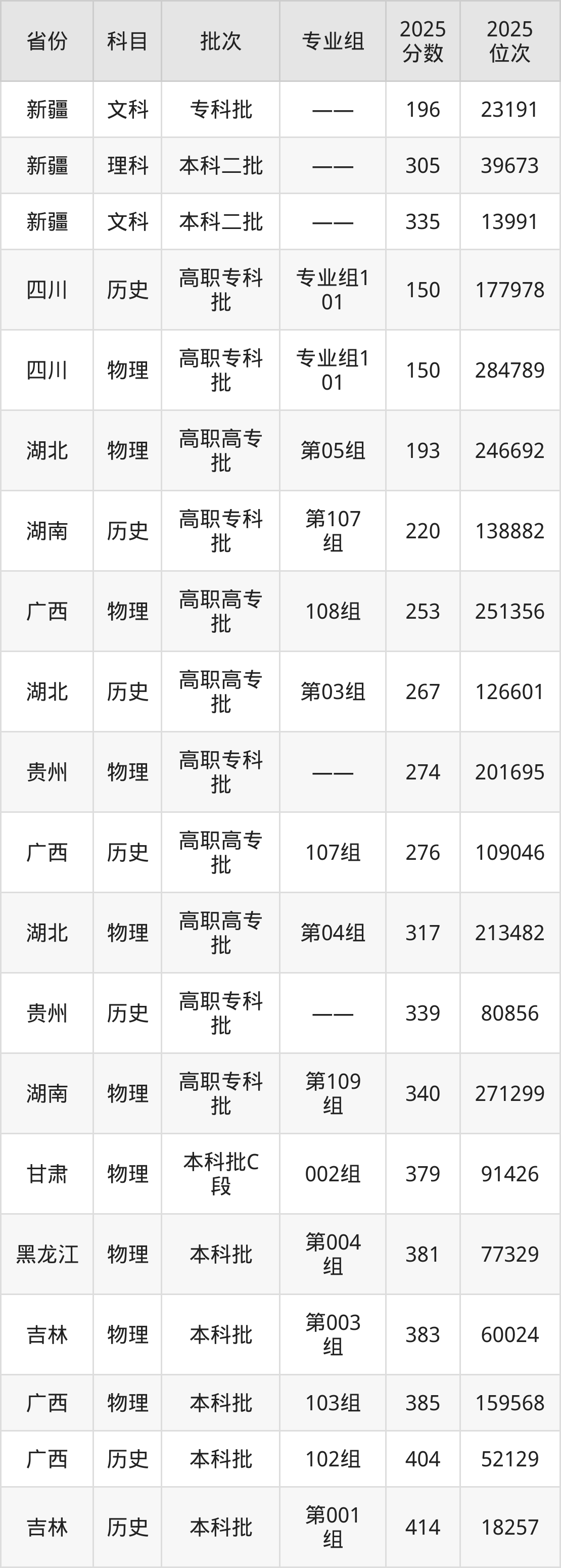 最低录取分数线是150分,对应位次是177978名,招生地区为四川;