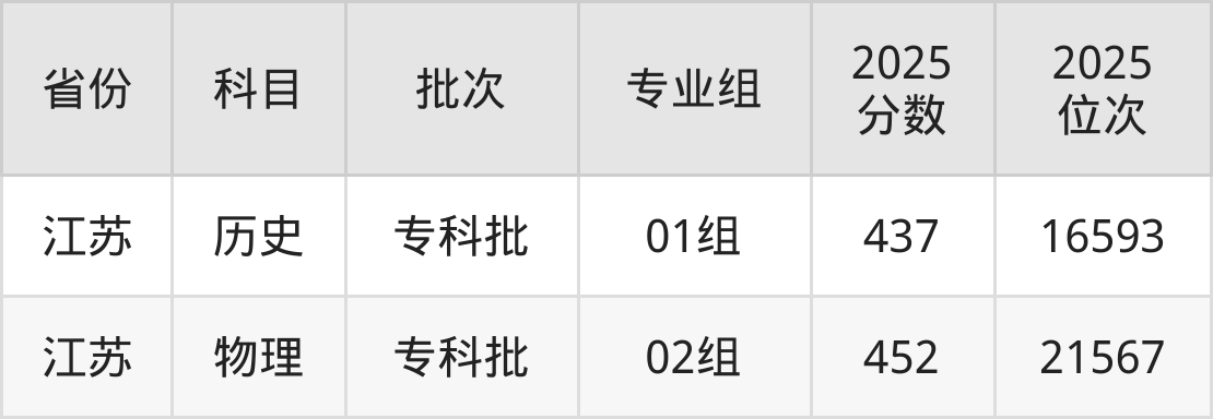 2025年苏州工艺美术职业技术学院在各省普通批录取分数线一览表: