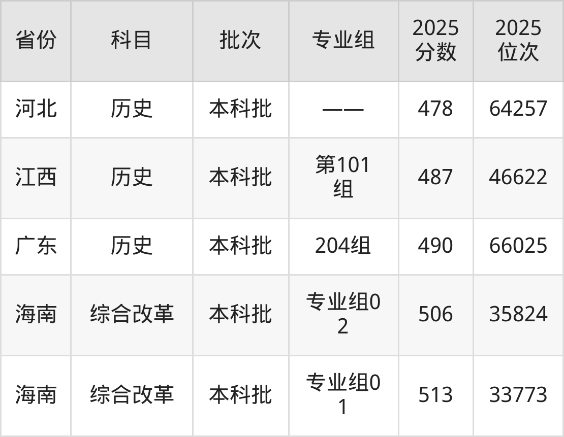 最高录取分数线是490分,对应位次是66025名,招生地区为广东。
