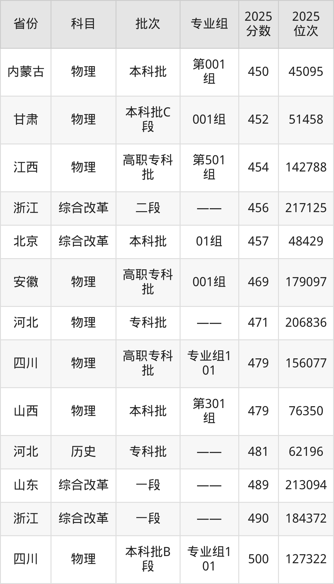 最高录取分数线是490分,对应位次是184372名,招生地区为浙江。