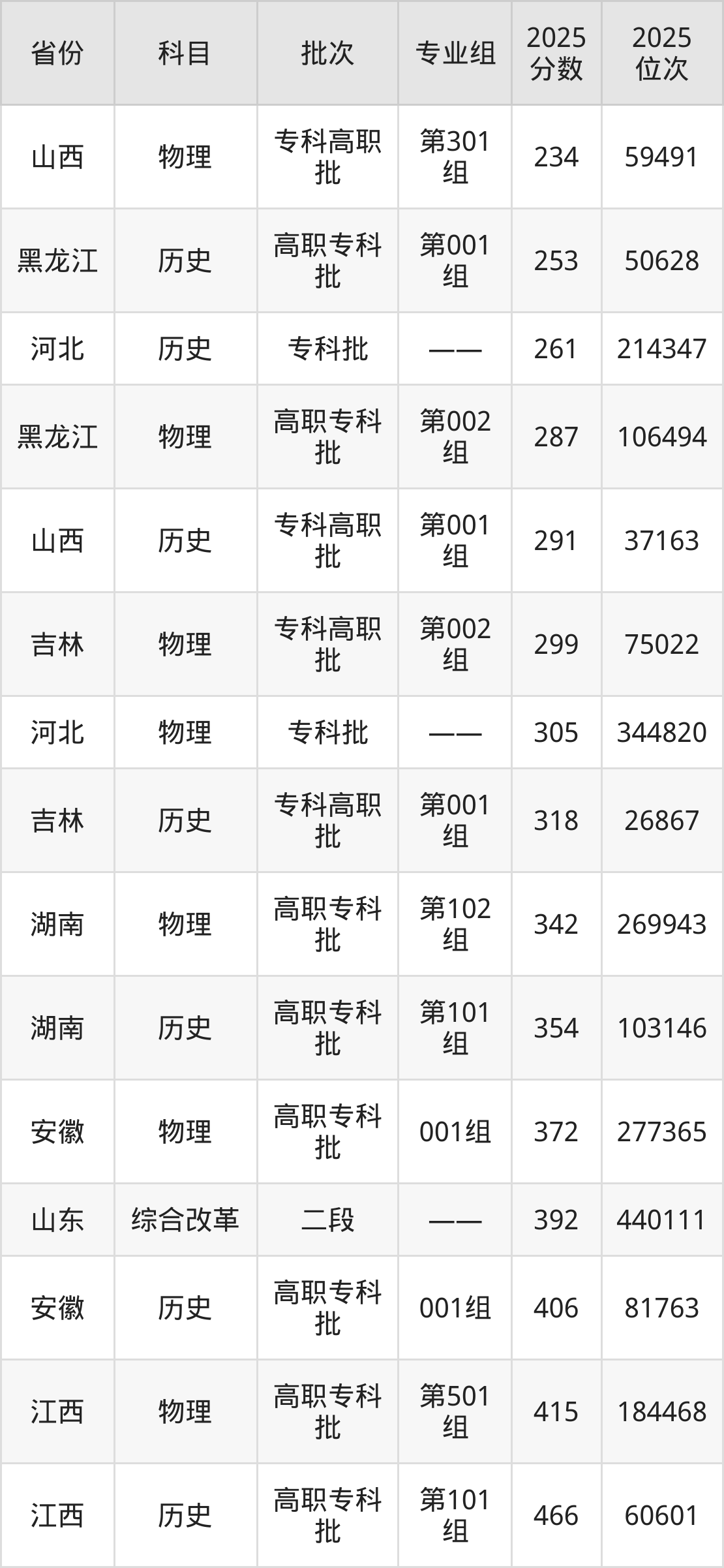 最低录取分数线是234分,对应位次是59491名,招生地区为山西;