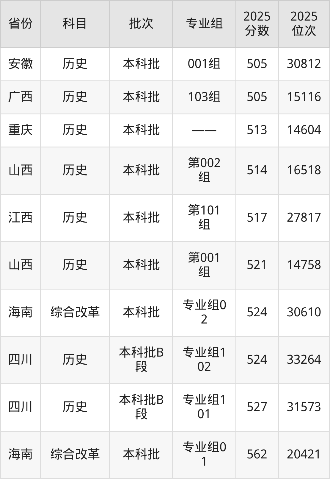 最高录取分数线是527分,对应位次是31573名,招生地区为四川。