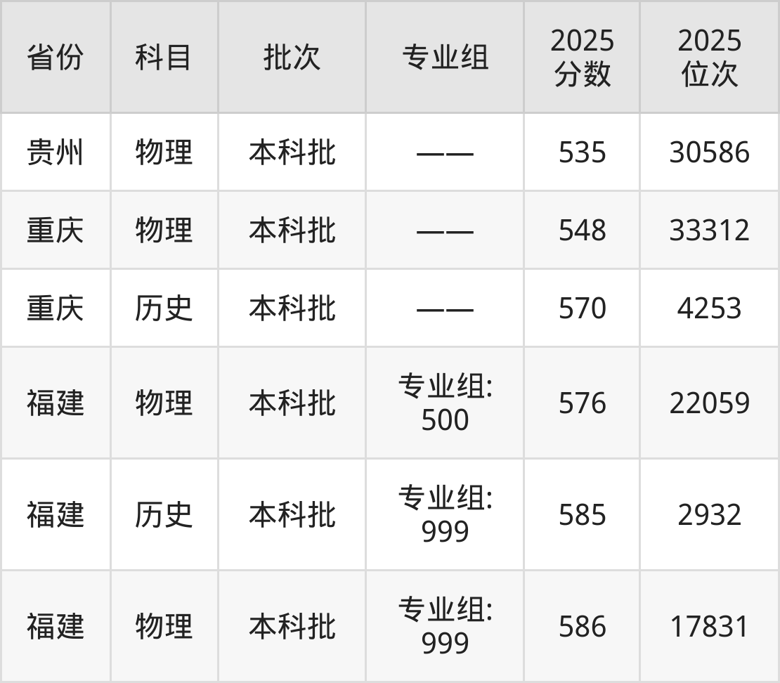 最低录取分数线是535分,对应位次是30586名,招生地区为贵州;