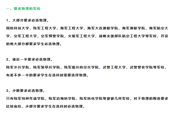 综合以上来看,如果想要考军校且能在专业上有更多选择的话,物化生、物化地、物化政这三个组合是最佳选择。