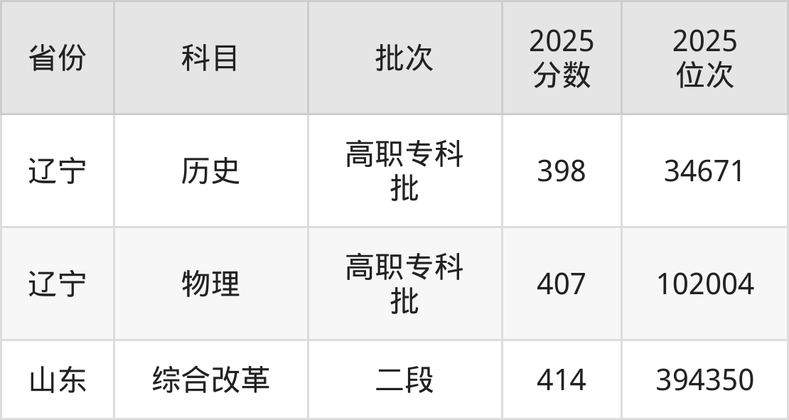 2025年青岛远洋船员职业学院在各省普通批录取分数线一览表: