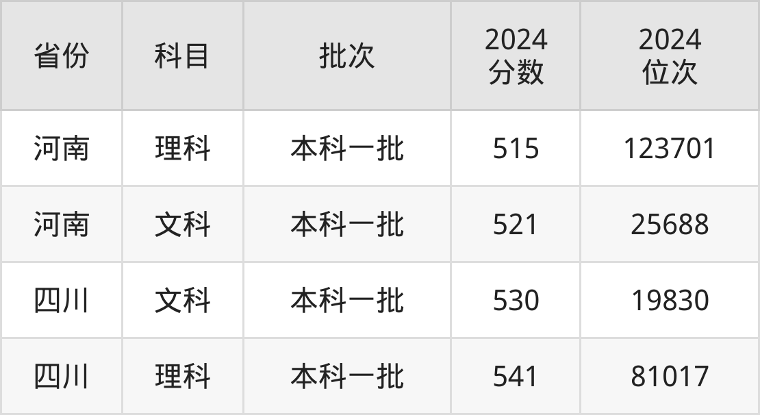 最低录取分数线是515分,对应位次是123701名,招生地区为河南;