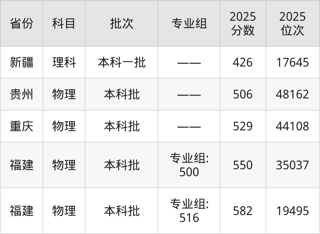 最低录取分数线是426分,对应位次是17645名,招生地区为新疆;