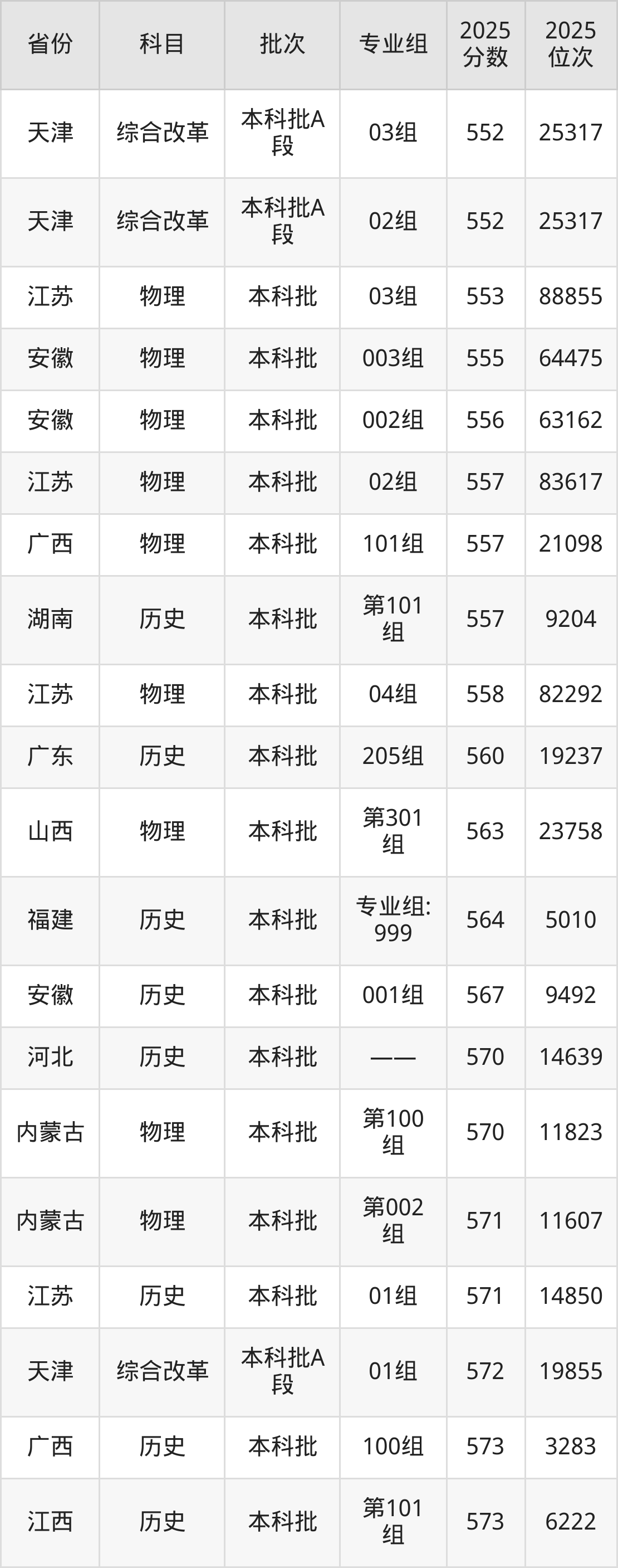 最高录取分数线是571分,对应位次是11607名,招生地区为内蒙古。