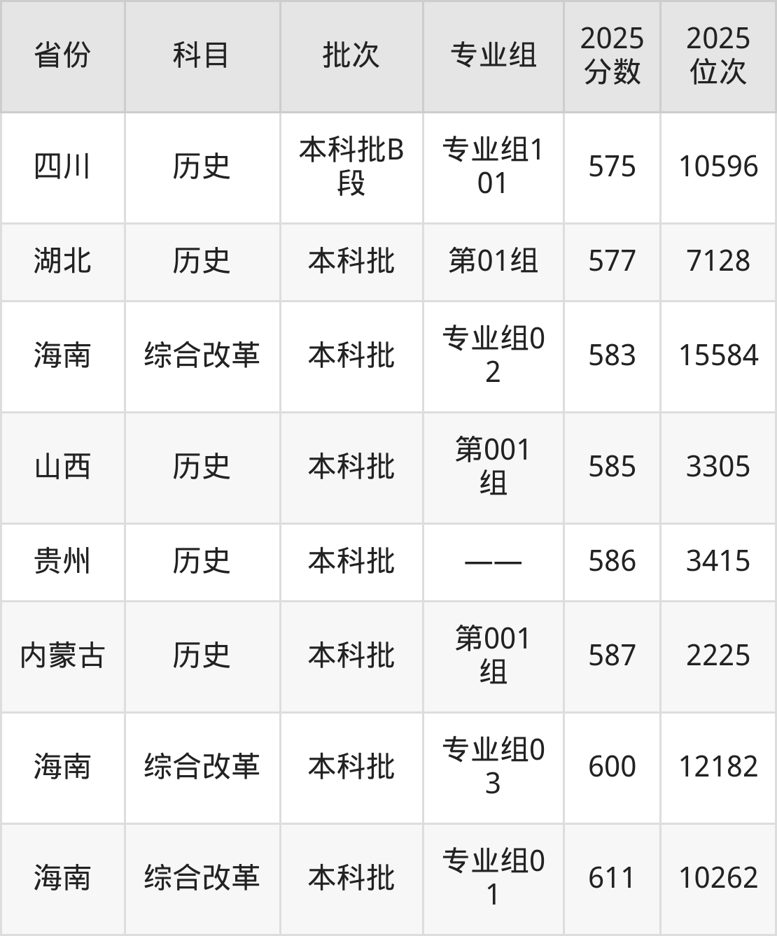 最高录取分数线是611分,对应位次是10262名,招生地区为海南。