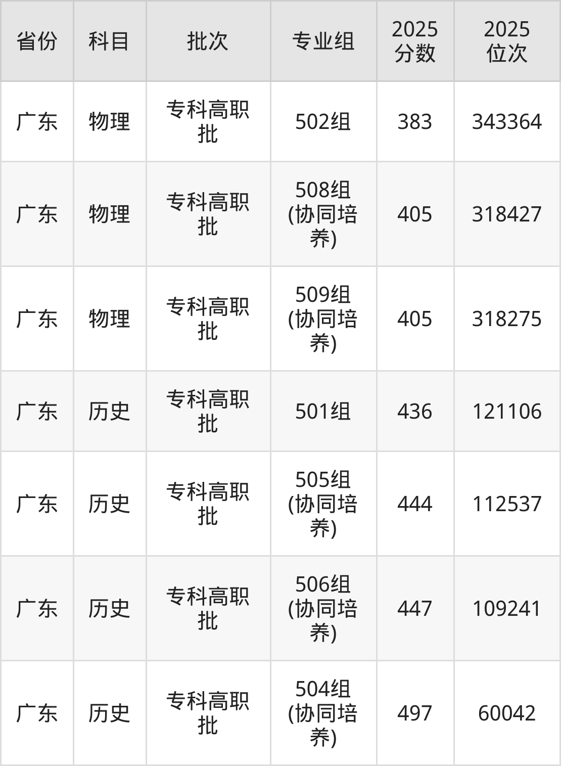 2025年广东行政职业学院在各省物理类的录取分数线位于383分-405分之间。