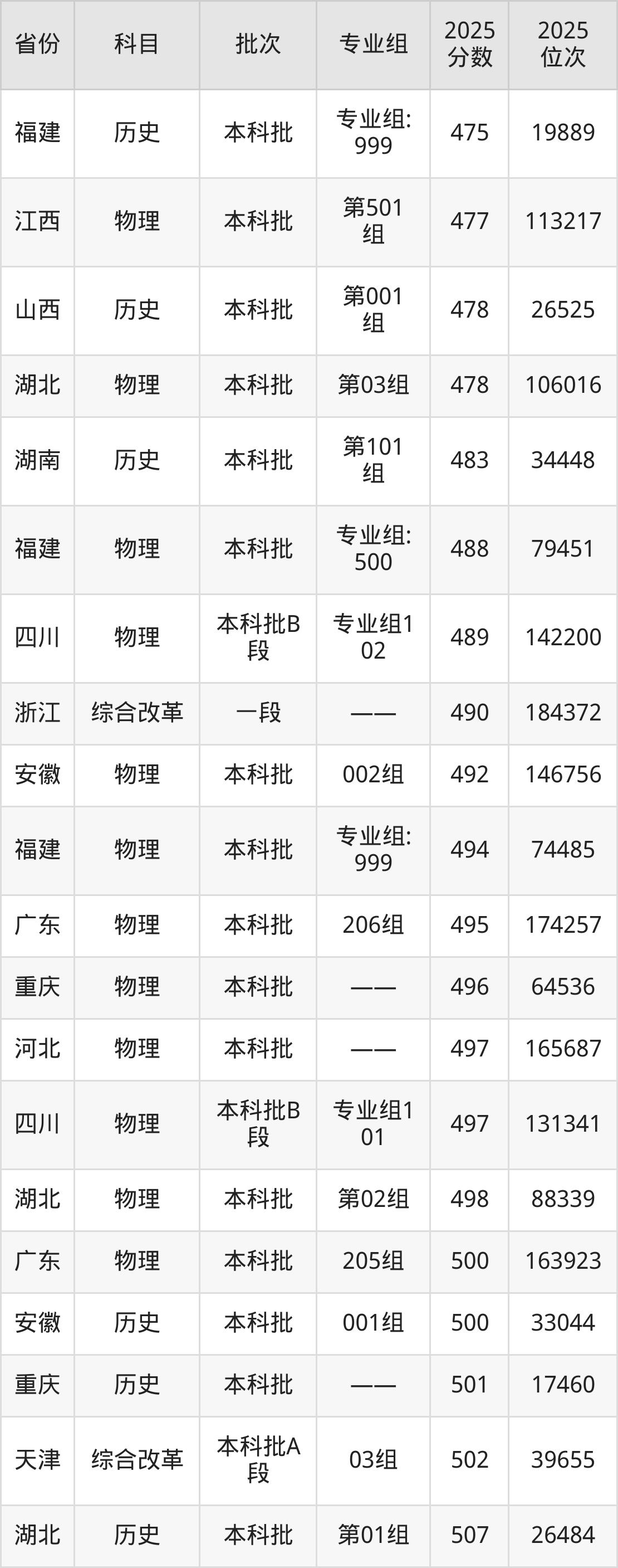 最低录取分数线是369分,对应位次是485282名,招生地区为山东;