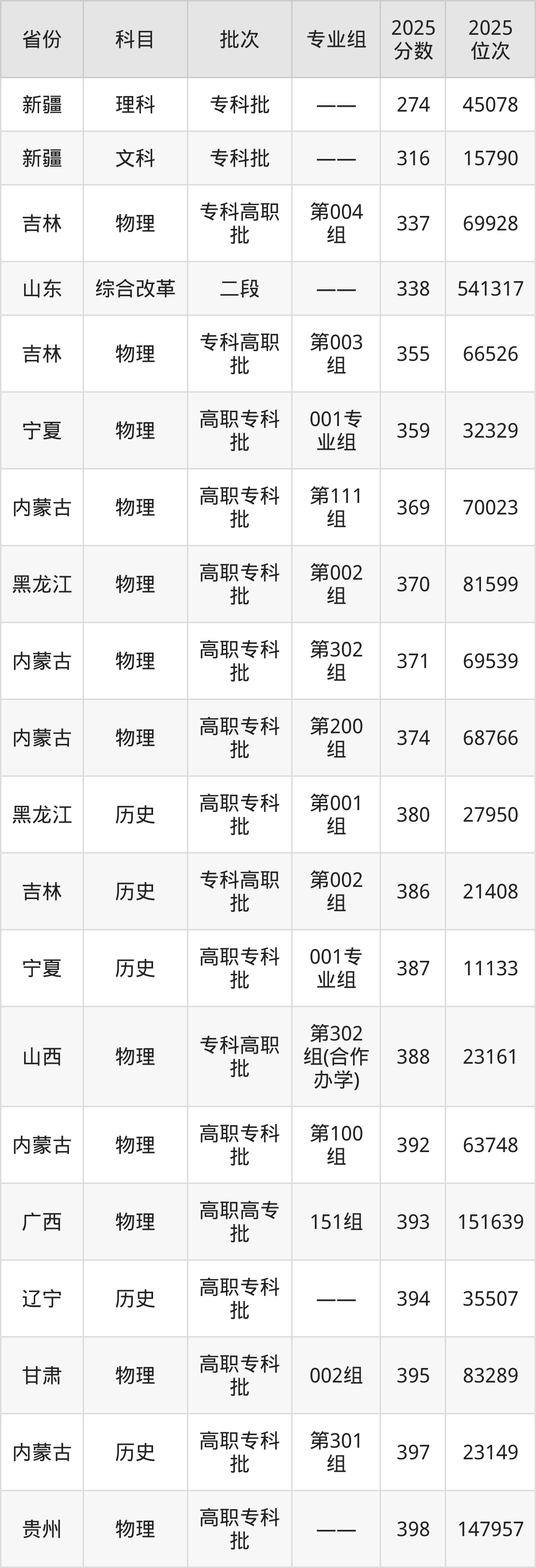 最低录取分数线是338分,对应位次是541317名,招生地区为山东;