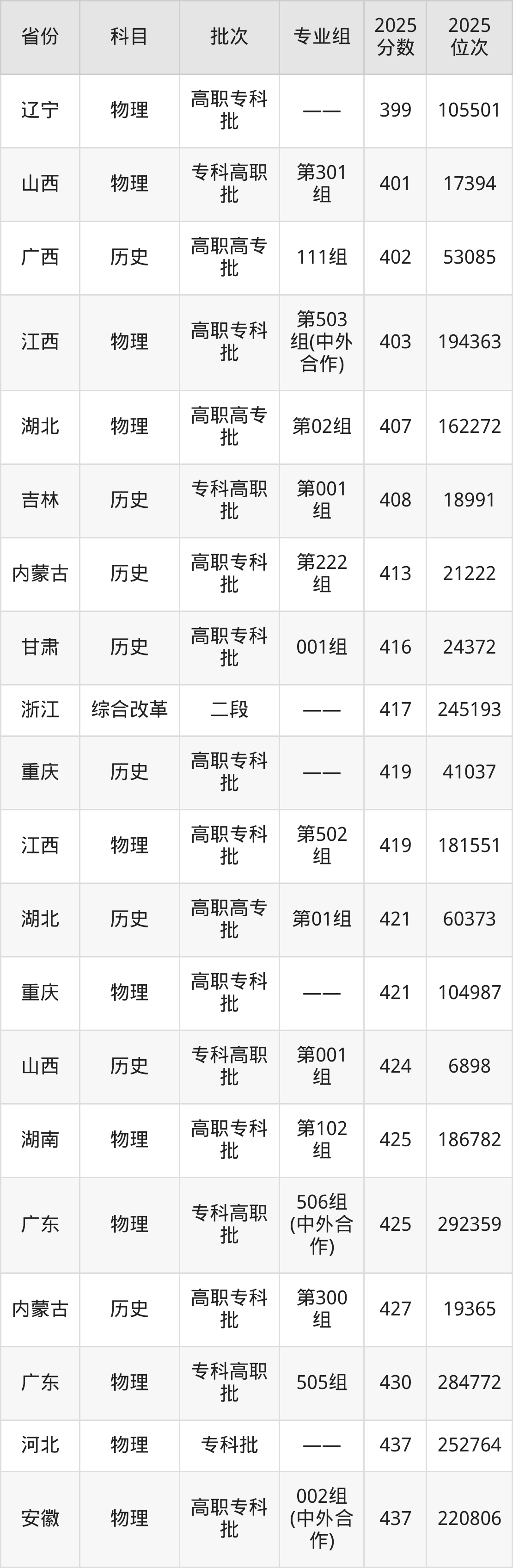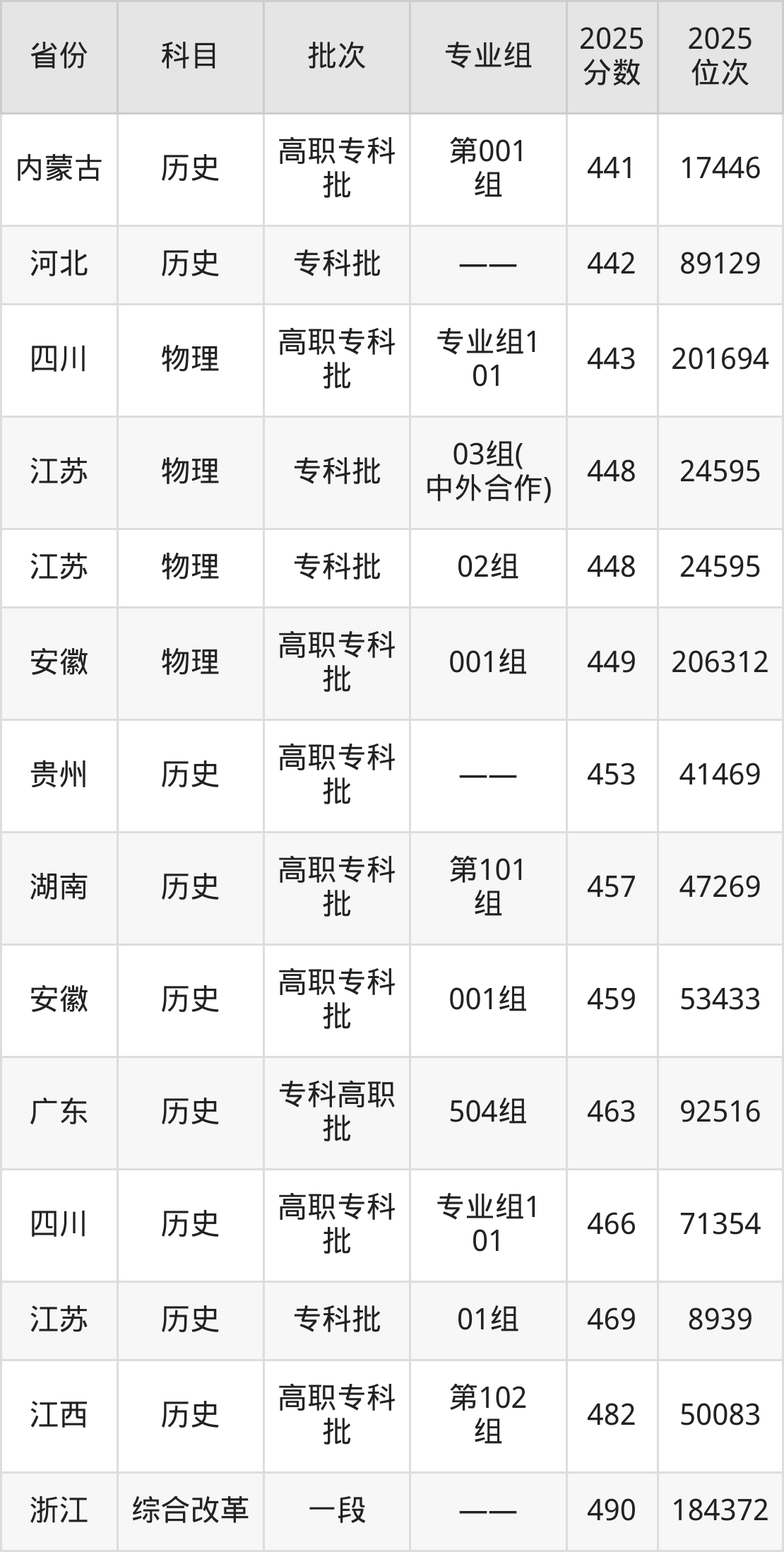 2025年上海民航职业技术学院在各省物理类和理科的录取分数线位于274分-449分之间。