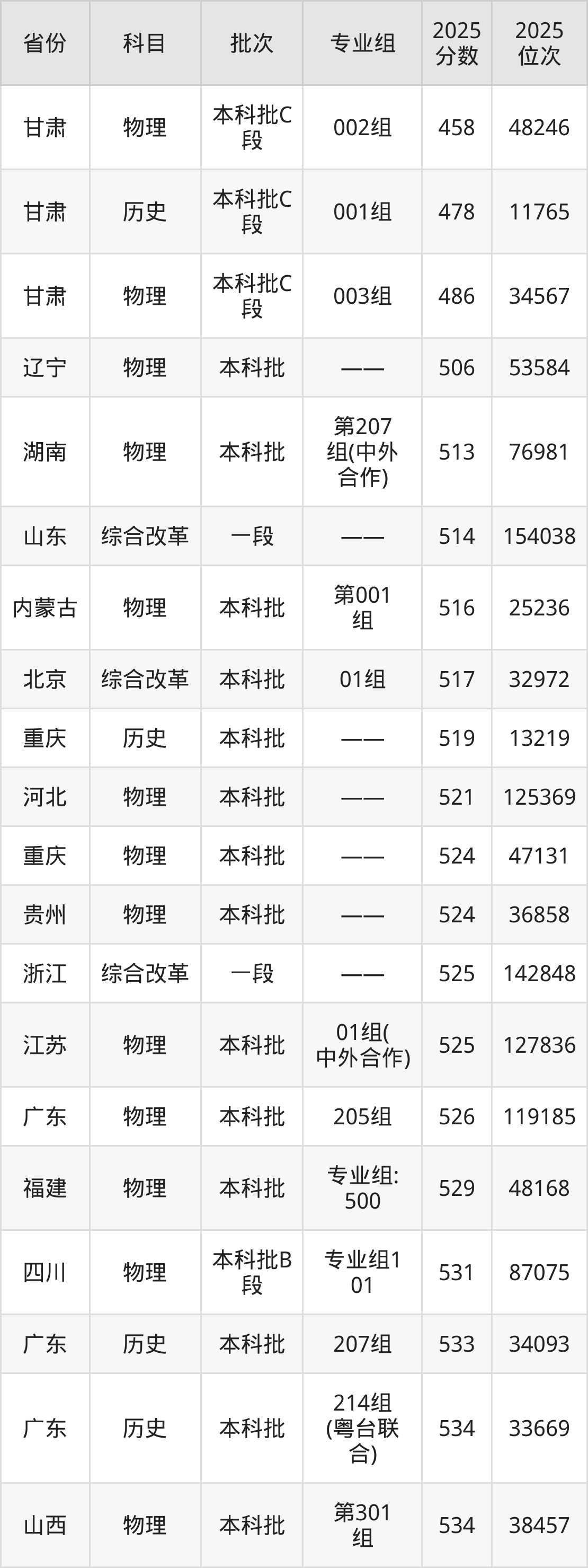 最低录取分数线是514分,对应位次是154038名,招生地区为山东;