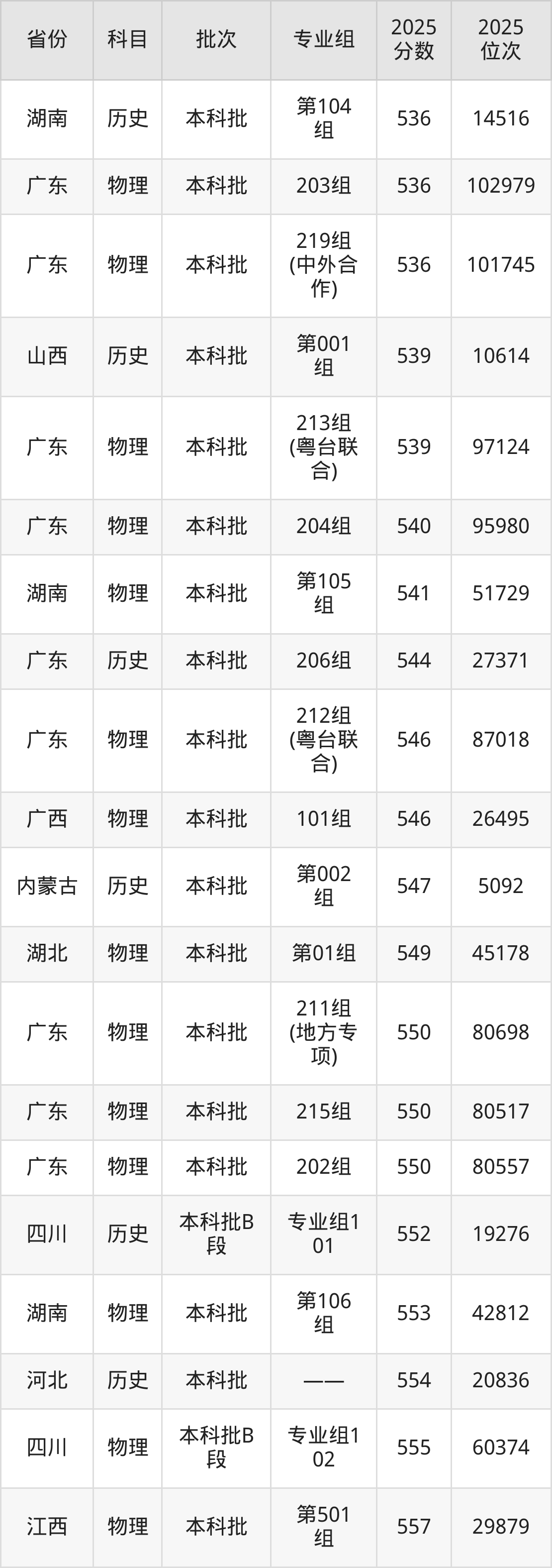 最高录取分数线是563分,对应位次是63807名,招生地区为广东。