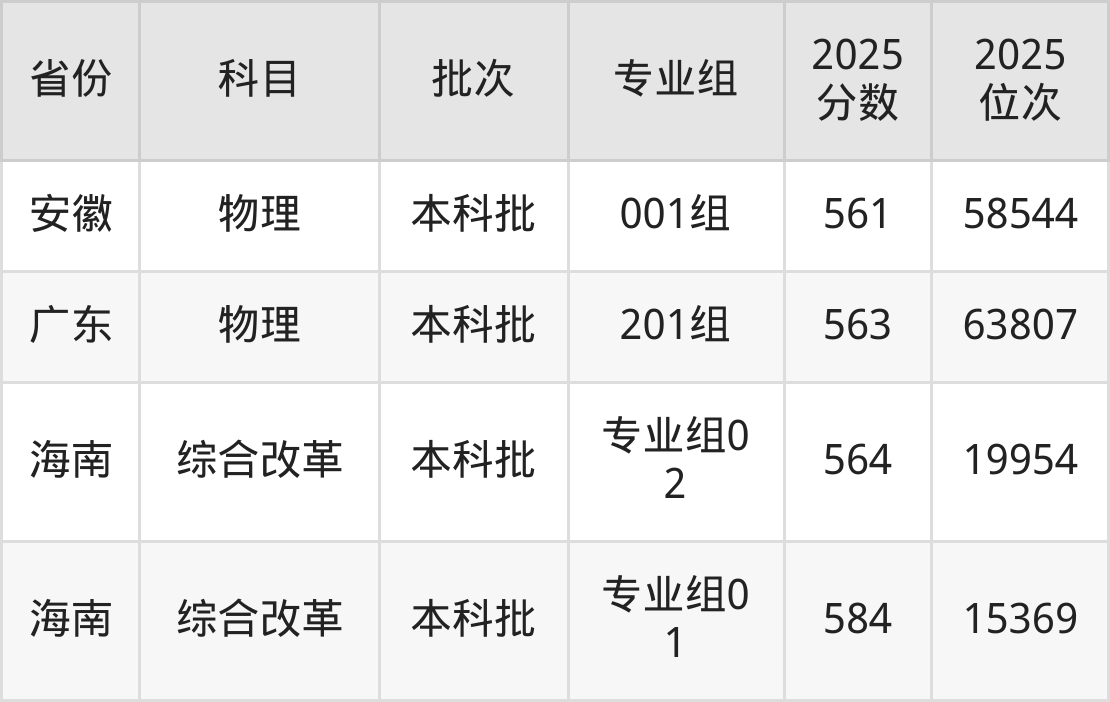 最高录取分数线是584分,对应位次是15369名,招生地区为海南。