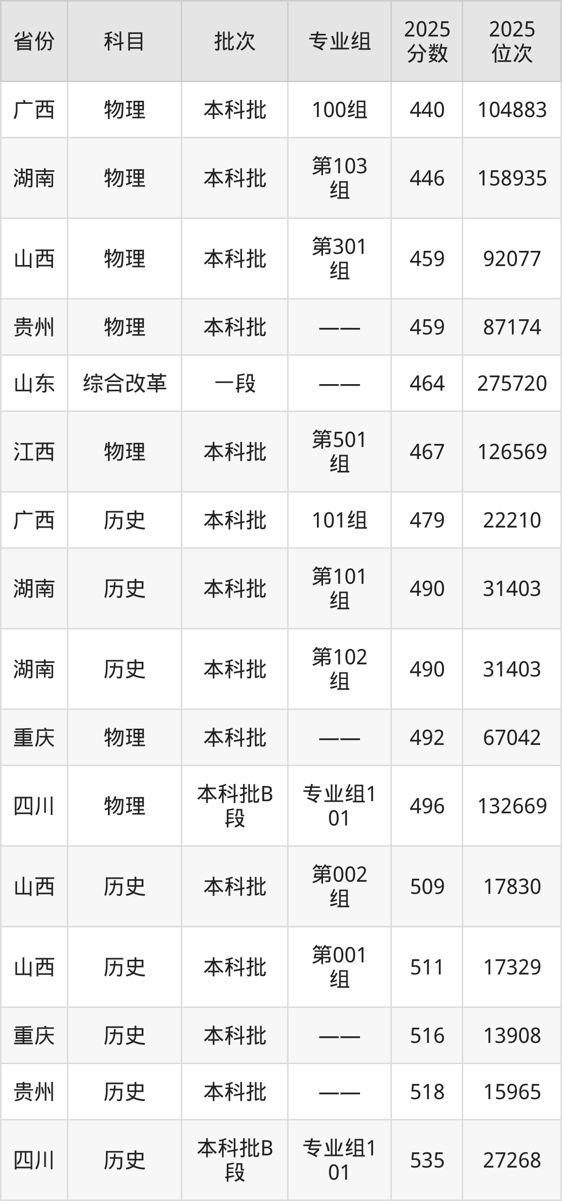 2025年保山学院在各省物理类的录取分数线位于440分-496分之间。