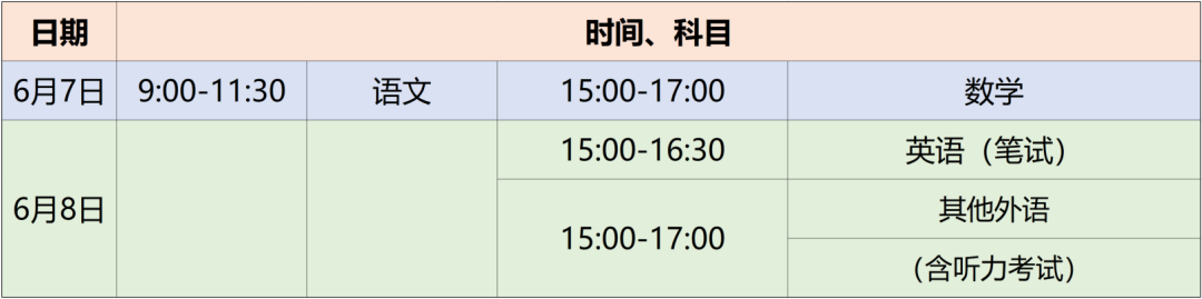 (1)本次考试的语文、数学和外语(含英语、俄语、日语、德语、法语、西班牙语),每科总分为150分,共计450分;